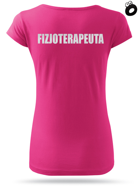 Koszulka damska, kolor różowy, nadruk odblaskowy FIZJOTERAPEUTA