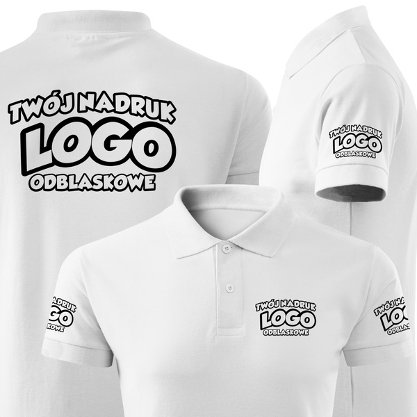 - Męska koszulka polo z indywidualnym nadrukiem umieszczonym na piersi, plecach i obu rękawkach. Doskonale sprawdzi się jak i jako element odzieży firmowej, reklamowej lub jako personalizowany prezent dla bliskiej osoby.