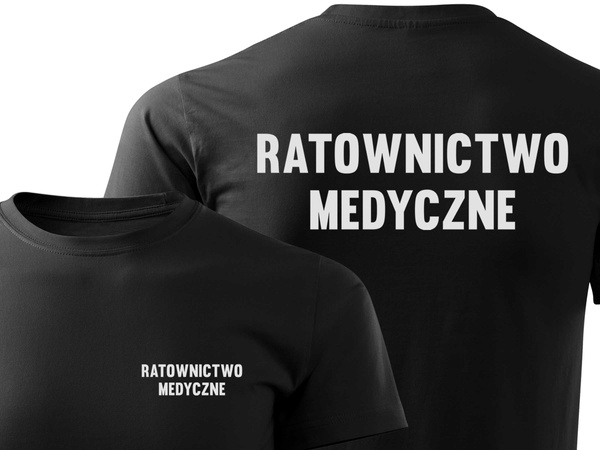 Wysokiej jakości wygodna koszulka z napisem RATOWNICTWO MEDYCZNE. T-shirt wykonany z naturalnego materiału, bawełny, a z zewnątrz wykończony przyjemną w dotyku powłoką silikonową.